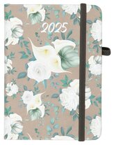 Kalendarz 2025 A6 tyg. Flamenco białe kwiaty