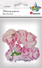 Papierowe róże na druciku różowe15mm 12szt