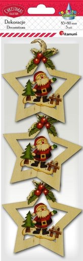 Drewniane zawieszki gwiazdy z Mikołajem 3szt