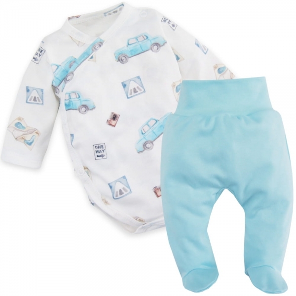 Zavinovací kojenecké body + polodupačky Blue Car 2D, modrá/bílá, vel. 62; 62 (2-3m)