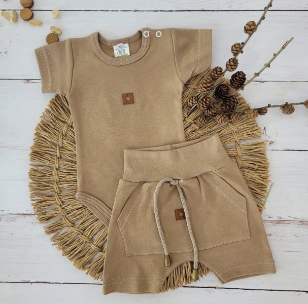 Body krátký rukáv + Baggy s klokaní kapsou, 2D sada Z&Z - sv. hnědá, vel. 68; 68 (3-6m)