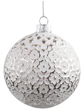 Sada skleněných baněk 4 cm, 6 ks v balení, bílý glitr