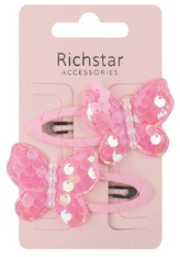 Sponky do vlasů s motýlky a flitry světle růžové 6,5 x 3,5 x 0,5 cm, 2 ks