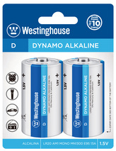 Baterie alkalická Westinghouse D/LR20 1,5V Dynamo alkalická, blistr 2ks