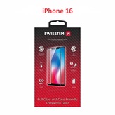 SKLO SWISSTEN FULL GLUE, COLOR FRAME, CASE FRIENDLY PRO APPLE IPHONE 16 ČERNÉ