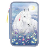 Penál 3 patra s výbavou Miss Melody, Růžový + pastelové barvy, 3 koně v běhu vodou