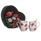 HOME ELEMENTS Sada dvou šálků 350 ml se lžičkami, Máky černé