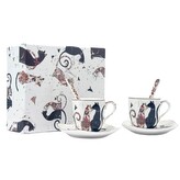 HOME ELEMENTS Šapo sada espresso 90 ml, dva šálky se lžičkami, Kočky