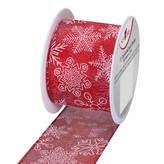 Stuha textilní 2mx40mm, červená s vločkami