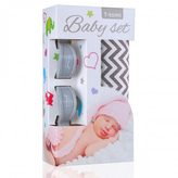 Baby set – bambusová osuška grey roofs / šedé stříšky + kočárkový kolíček grey / šedá