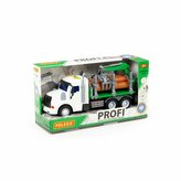 Polesie 96180 Profi, samochód do przewozu dłużycy inercyjny, ze światłem i dźwiękiem, zielony w pudełku