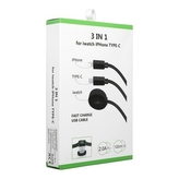 Datový kabel iPhone 3v1, lightning konektor + Apple watch 3W, USB TYP C, barva bílá