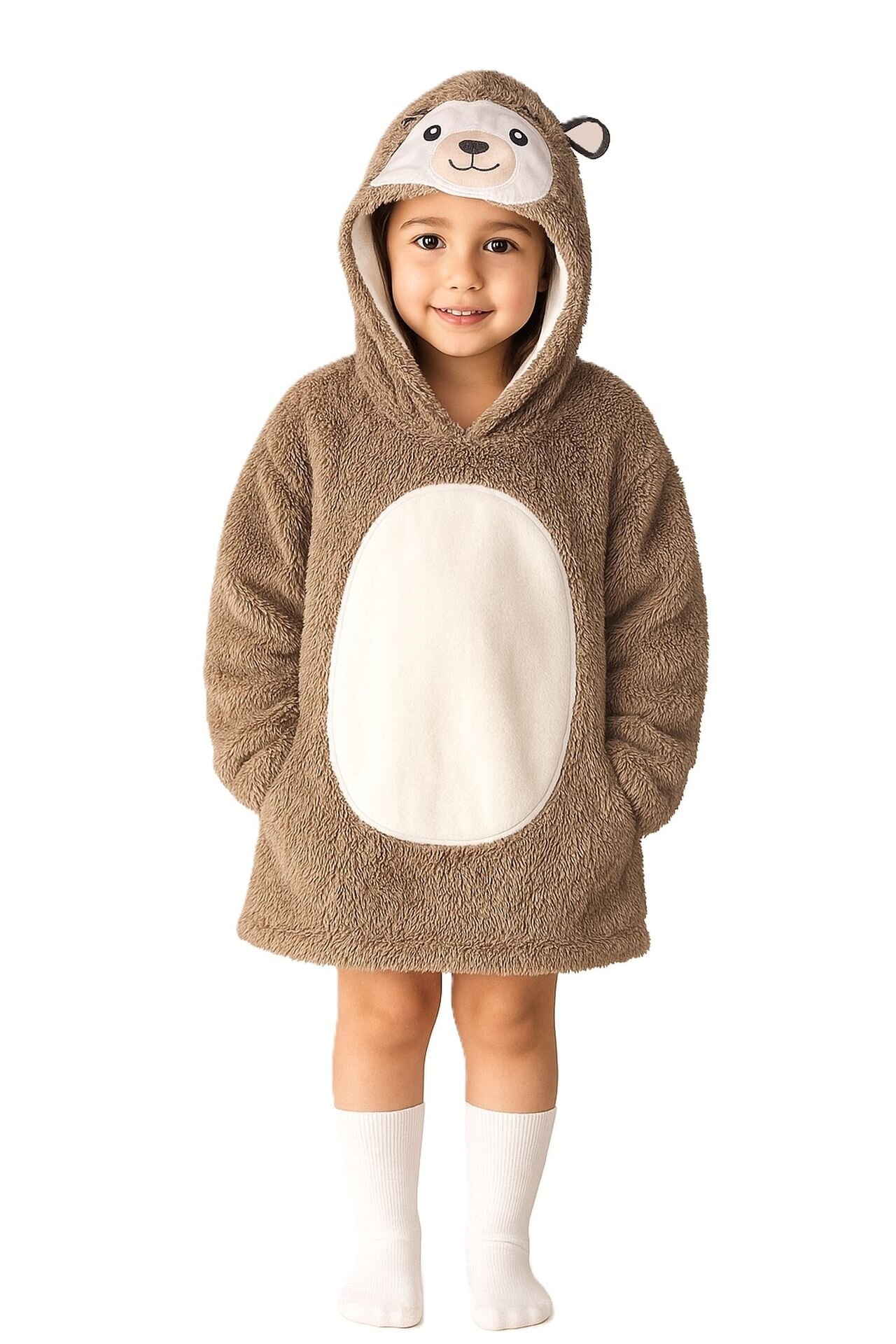 Velká mikina s kapucí s motivem zvířátka, která plní funkci teploučké, měkoučké a nadýchané deky, která zahřeje při každé příležitosti a navíc děti potěší svým hravým a líbivým designem. Vnitřek mikiny byl vyroben z hřejivého nadýchaného sherpa fleecu a lícová strana ze super měkkého hebkého...