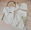 Žebrované zavinovací body, tepláčky a čepička Kazum 3D bavlněná sada, bílé; 56 (1-2m)