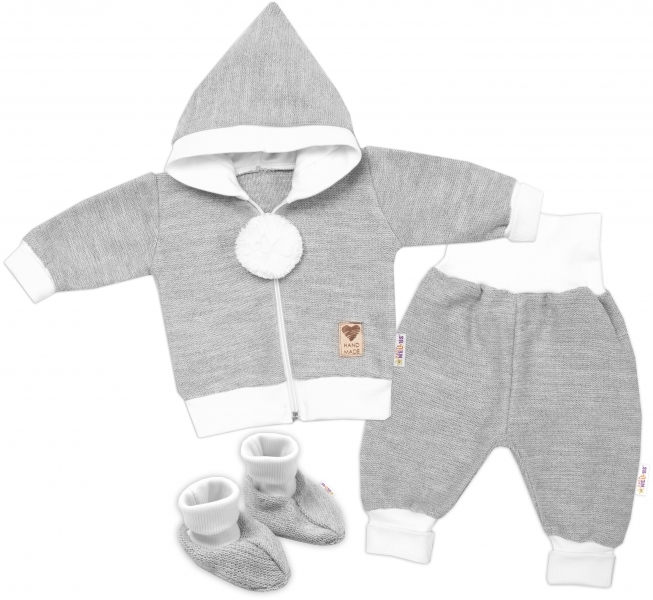 3-dílná souprava Hand made, pletený kabátek, kalhoty a botičky, šedá; 56 (1-2m)