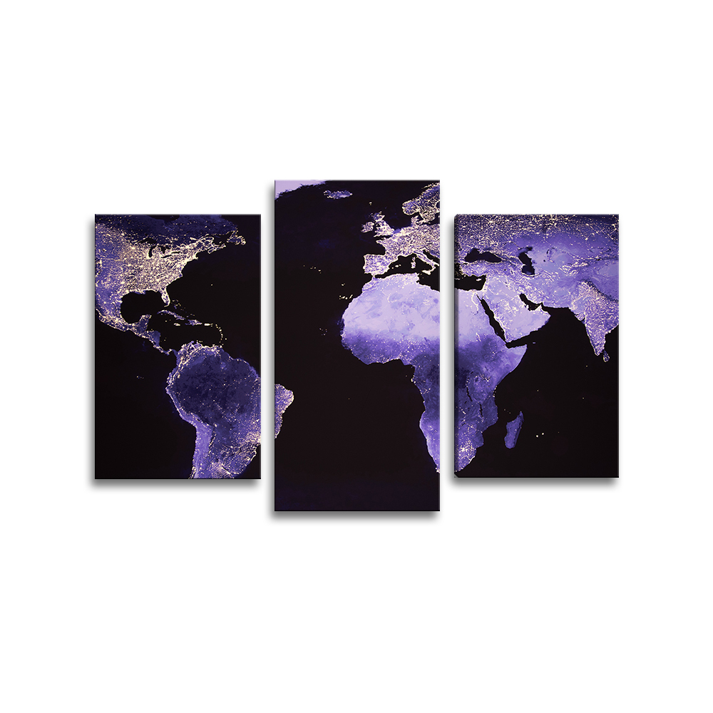 Obraz - 3-dílný Světelná mapa světa: 75x50 cm