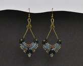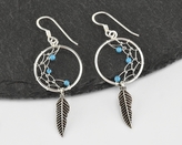 Stříbrné visací náušnice, půl Lapač snů - modrý kamínek