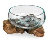 Skleněná mísa na dřevě 15 cm - var. U