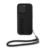 BMW Leather Signature and Strap Zadní Kryt pro iPhone 16 Pro Black