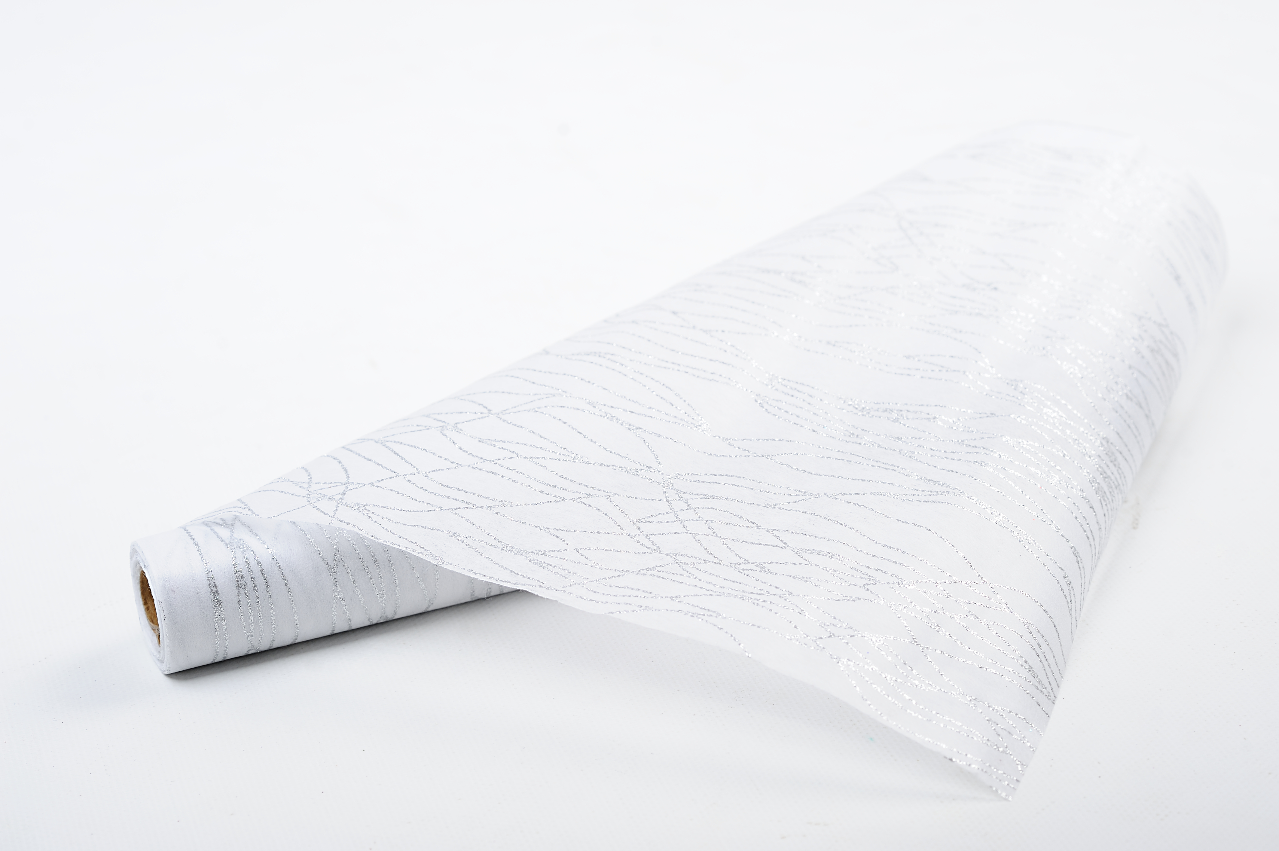 Bílý 37,5 cm široký vlizelín s krásnou glitrovanou vlnkou na roli. Nejen k vánoční dekoraci a aranžmá. číst celé