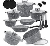 Sada kuchyňského nádobí s mramorovým povrchem a příslušenstvím pro indukci, plyn i troubu - 15 ks