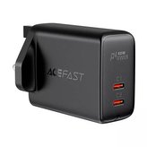 Acefast nástěnná nabíječka (UK zástrčka) 2x USB Type C 40W, PPS, PD, QC 3.0, AFC, FCP černá (A12 černá)