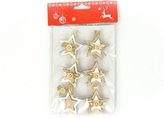 Dřevěná dekorace na kolíčku - Hvězdička s knoflíčkem a jutou - 6 ks