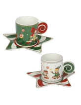 Sada 2 malých šálků s podšálkami na presso 70 ml ELFOMAGIA čevený/bílý BRANDANI