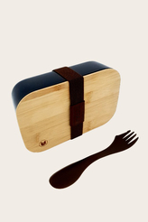 Box na oběd nebo svačinu s bambusovým víkem a lžicí a vidličkou v jednom černý 500ml RETULP