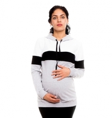 Be MaaMaa Těhotenské, kojící tričko/mikina Ivet, šedo-černo-bílá, vel. L