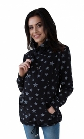 Be MaaMaa Těhotenská a kojící mikina s roláčkem - černá, potisk hvězdičky, vel. L