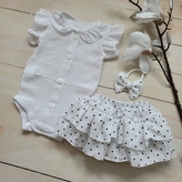 Mušelínová sukničkokraťásky, bodýčko a čelenka, 3D sada, bílá/dots; 56/62