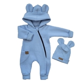 Oteplený dětský overal bez šlapek s kapucí + čepička, 2D, modrý, vel. 68; 68 (3-6m)