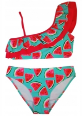 Dívčí dvoudílné plavky s volánkem - Noviti, Meloun, tyrkys/růžová; 116-122 (5-7r)