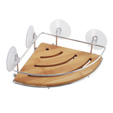 MSV rohová polička s přísavkami JOY, do koupelny, chromovaný plast, bambus