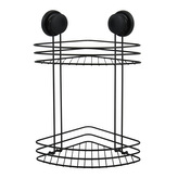 MSV rohová polička s přísavkami MEGA VENTOUSES, do koupelny, 2 patra, černá, ocel, 21,5 cm