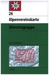 Alpenvereinskarte Silvrettagruppe mit Wegmarkierungen und Skirouten