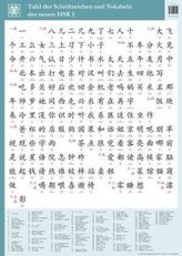 Tafel der Schriftzeichen und Vokabeln des neuen HSK 1