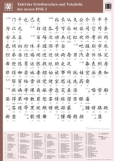 Tafel der Schriftzeichen und Vokabeln des neuen HSK 2