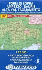 Tabacco topographische Wanderkarte Forni di Sopra, Ampezzo-Sàuris, Alta Val Tagliamento