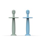 SILIKÓNOVÉ ZUBNÉ KEFKY NA PRST S PUZDROM MATCHSTICK MONKEY - GREY AND MINT GREEN