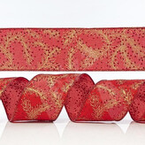 Eurolamp Vánoční dekorace červená stuha se zlatými listy, 6,35 cm, 1 ks