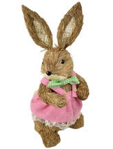 Slámová zaječice v růžových šatech 39 cm
