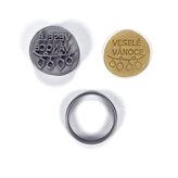 Nápis Veselé Vánoce s ozdobami razítko s vykrajovátkem
