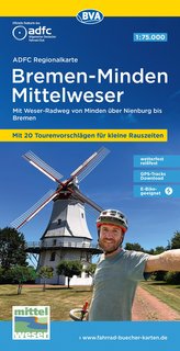 ADFC-Regionalkarte Bremen-Minden Mittelweser, 1:75.000, mit Tagestourenvorschlägen, reiß- und wetterfest, E-Bike-geeignet, GPS-T