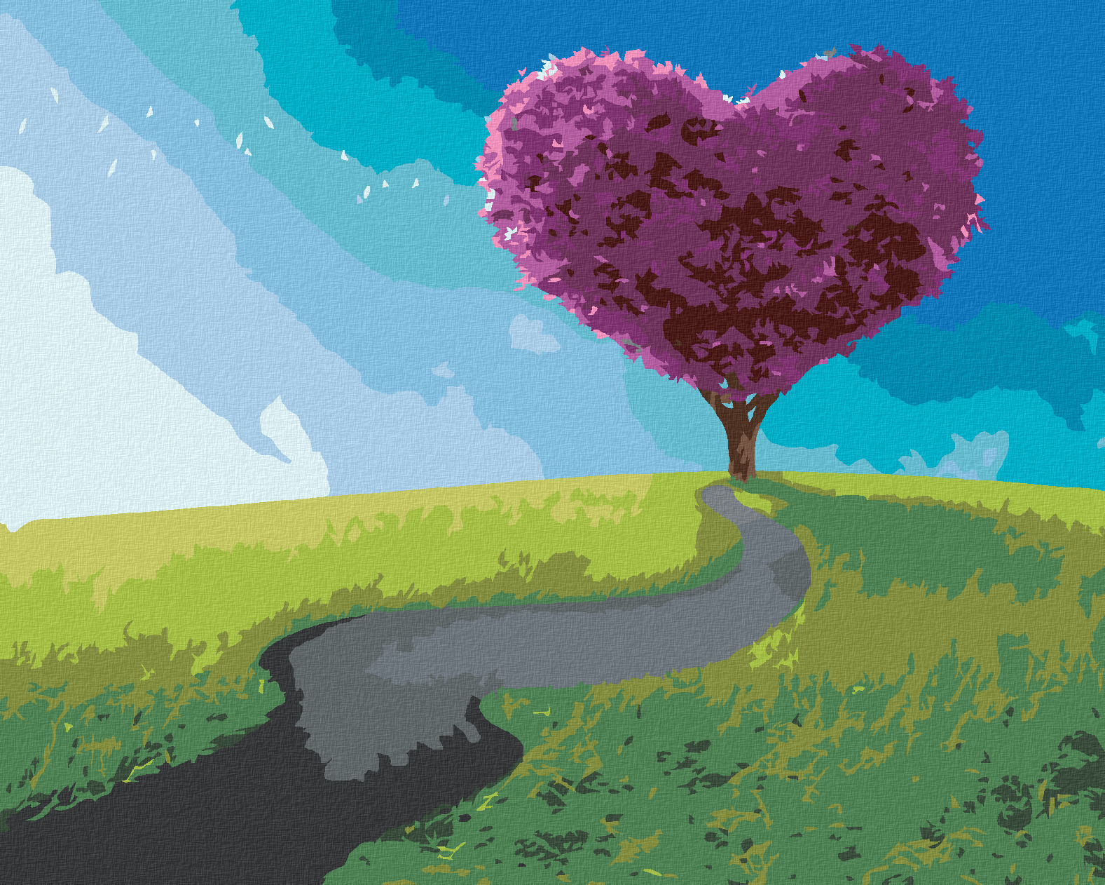 Malování podle čísel - FIALOVÝ STROM VE TVARU SRDCE - 80x100 cm, bez rámu a bez vypnutí plátna