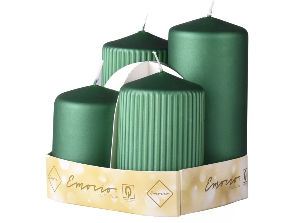 Emocio Sada 4ks Válec hladký + rýhovaný 65mm, Metal mat zelený tmavý, svíčky