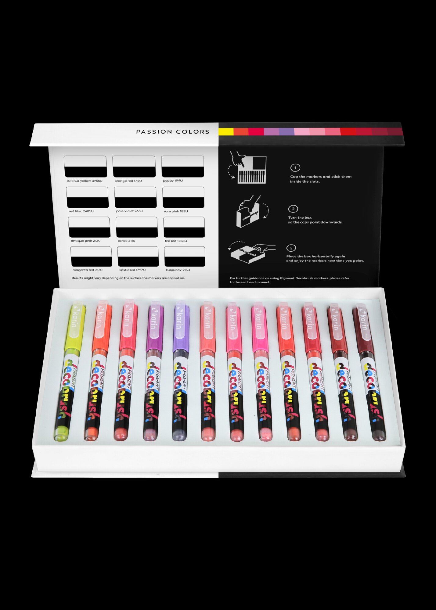 Karin Pigment Deco Brush akrylové fixy sada 12 ks Barvy Karin: 12 PASSION