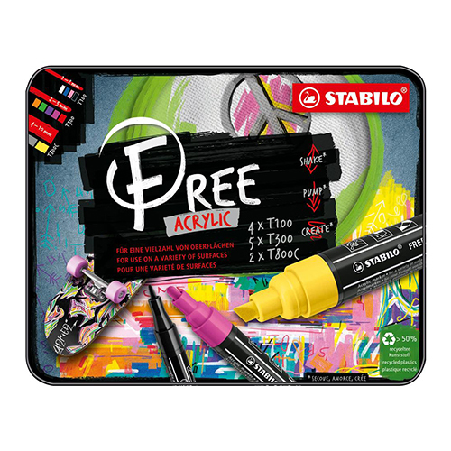Akrylový popisovač STABILO FREE Acrylic 4xT100, 5xT300, 2xT800C, sada 11 ks