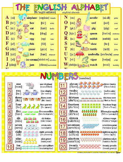 - Obsahuje anglickou abecedu a číslovky 1-20 oboustranně potištěné.